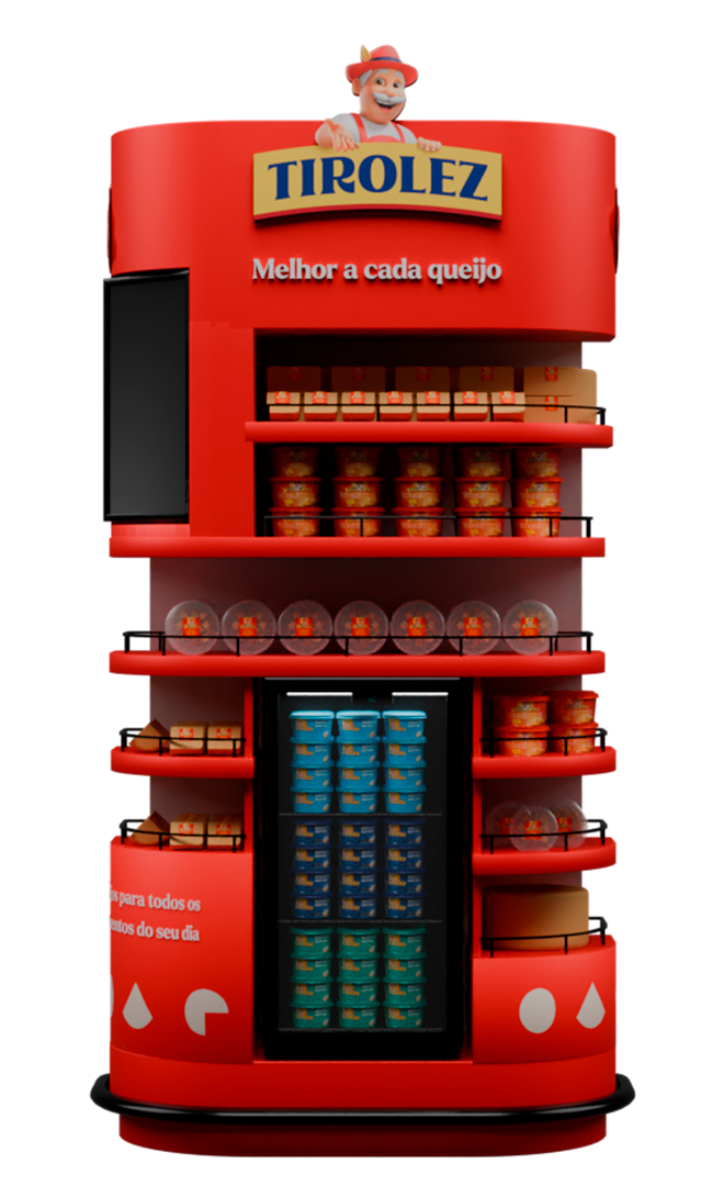 A Tirolez buscava uma solução de ponto de venda que reforçasse sua identidade visual, valorizasse a exposição dos queijos e criasse uma conexão direta com o conceito “Momentos para compartilhar”.